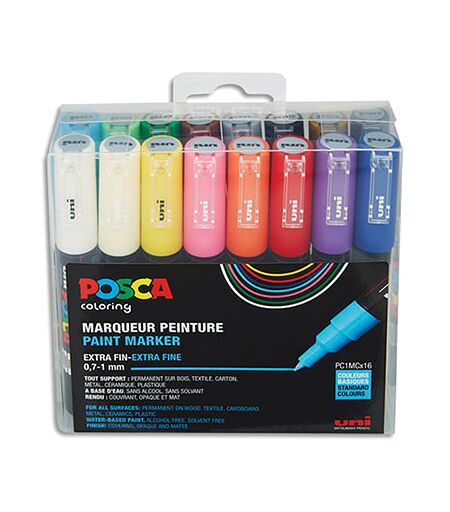 Pochette de 16 marqueurs UNI POSCA - Pointe conique extra fine 0,7-1mm - Coloris assortis