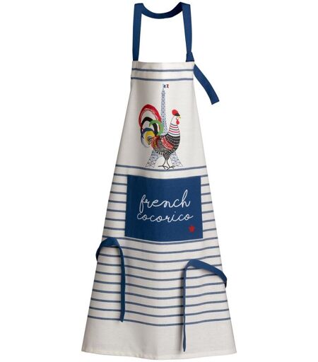 Maison Vivaraise Tablier de cuisine recyclé French Cocorico Ecru/bleu 85 cm unisex