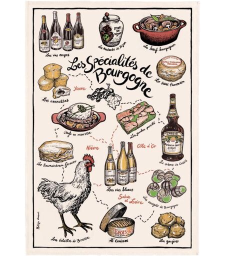 Maison Vivaraise Torchon Imprime Specialités de Bourgogne Ecru 48 X 72 unisex