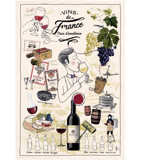 Maison Vivaraise Torchon Imprimé Crus d'excellence Ecru 48 x 72 unisex