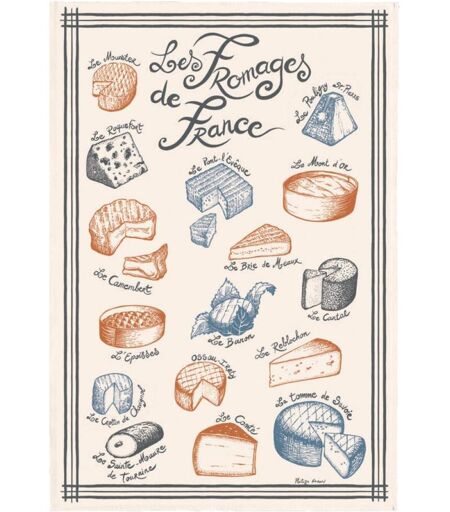 Maison Vivaraise Torchon Imprimé Fromages de France Ecru 48 x 72 unisex