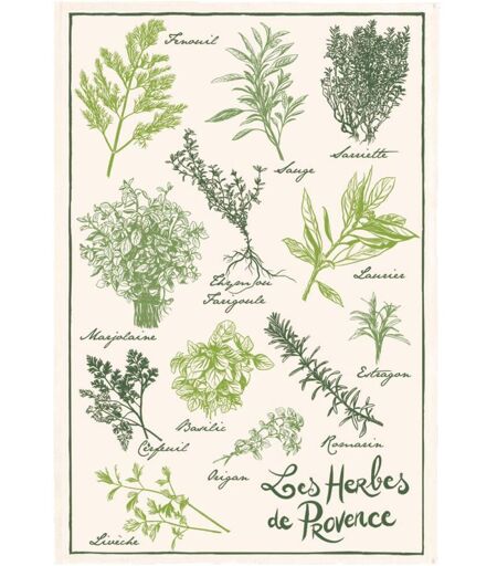 Maison Vivaraise Torchon Imprimé Les herbes de provence Ecru 48 x 72 unisex