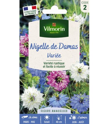 Variété appelée également “cheveux de Vénus”, rustique et facile à réussir, au feuillage finement découpé, donnant de belles fleurs doubles aux couleurs variées. Associez les nigelles aux coquelicots et pavots. Ne coupez pas les fleurs fanées, les fruits qui suivront sont tout aussi décoratifs. ...