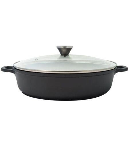 Mijoteuse basse 32 cm / 5 L - Pour faire mijoter lentement tous vos plats afin qu'ils soient savoureux à souhait ! - En fonte d'aluminium - Intérieur avec revêtement anti-adhérent Whitford Xylan Plus - Extérieur Noir - Couvercle en verre avec bouton inox et trou vapeur - Tous feux dont induction. ...