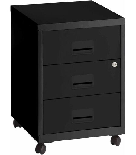 Aspect Coloris Noir mat Matériau principal Acier Dimensions Hauteur (en cm) 52,50 Longueur (en cm) 41 Profondeur (en cm) 41,50 Autres caractéristiques Informations complémentaires Serrure à barillet , Deux clefs fournies Livré monté Oui Poids (en kg) 12 Caisson de rangement 3 tiroirs en acier sur roulettes ...
