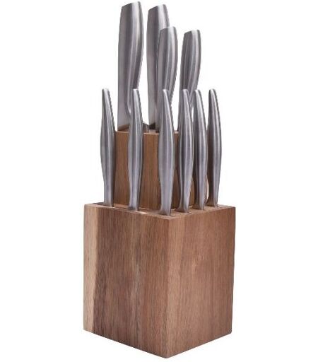 Bloc 10 couteaux - Fusal - Pratique et fonctionnel, ce bloc réunit 10 couteaux : 4 couteaux de cuisine indispensables (couteau Office 9 cm, couteau Chef 20 cm, couteau à Pain 20 cm et couteau Santoku 18 cm) ainsi que 6 couteaux à steak ! - Bloc 2 en 1 emboîtable en bois d'acacia - Couteaux tout inox, finition satinée - Nettoyage facile : les couteaux passent au lave-vaisselle. CARACTERISTIQUESOpérateur économique responsable : DUBOST COLAS PRADEL 20 RUE DE LA COUTELLERIE LE BOURG 63250 VISCOMTAT France Email / Site web ...