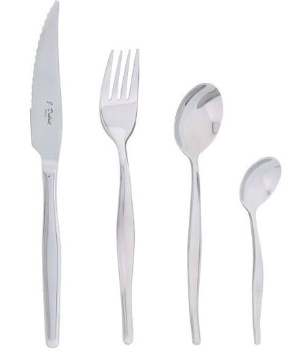 Ménagère 24 pièces - violon - invitez le chic et l'élégance à votre table avec cette ménagère tout inox ! - comprend 6 couteaux. 6 fourchettes. 6 cuillères de table et 6 cuillères à café - tout inox. Finition miroir poli - épaisseur 2.5 mm pour les fourchettes et cuillères de table et 1.8 mm pour les cuillères à café - couteaux monobloc avec lame micro-dentée - nettoyage facile : passe au lave-vaisselle - boîte cadeau open. - â ...