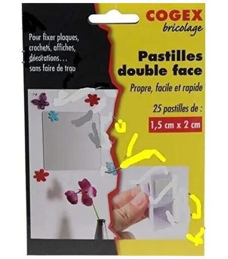Pastille double face COGEX de couleur principale blanche. Epaisseur de 8 mm. Lot de 25 pcs. ...
