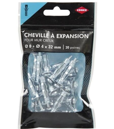 COGEX Cheville a expansion metallique - 20 paires - COGEX Cheville a expansion metallique - 20 paires - - Général : - Marque : COGEX - Type de produit : Chevilles - Type de Produit : Chevilles - Matière de la structure : Métal - Pays d'origine : Chine - Composition du lot : 40 ... ...