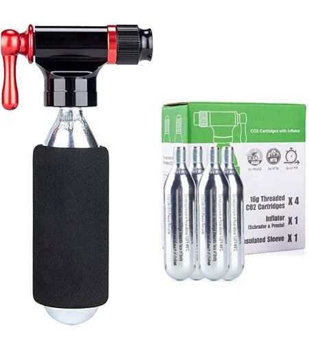 Pompe à CO2 pour vélo, pompe manuelle pour vélo, Tube de pneu en aluminium, pompe manuelle avec cartouche de CO2 de 16g pour vtt, accessoires de réparation de cyclismePuces:1. Kit de valeur: le Kit de gonflage de CO2 (cartouches de CO2 x 4/gonfleur de CO2/manchon isolant) est une nouvelle norme de cartouche de CO2 filetée, parfait pour faire des randonnées en montagne difficiles ou pour avoir besoin d'une pression d'air rapide pendant la course à la poursuite chaude! Avec les cartouches filetées de 16g, il peut remplir un gros pneu de vtt.2. Léger et Portable: le gonfleur de CO2 s'adapte à la valve Presta & Schrader, et les cartouches de CO2 sont plus petites et plus légères qu'une pompe à main, se glissant facilement dans un sac de selle ou une poche. Les cartouches sont pleines d'air comprimé et peuvent gonfler un pneu plat en quelques secondes. Mais veuillez noter que vous constaterez que votre pneu sera plat dans les 24 heures car le CO2 fuira hors de votre pneu plus rapidement que l'air.3. Compatible avec toutes les cartouches de CO2 filetées: la tête de gonflage convient aux éléments filtrants filetés en dioxyde de carbone de toute taille. Veuillez noter qu'une fois le CO2 libéré, la cartouche et la tête de gonflage seront froides, vous devez donc utiliser un manchon isolé (inclus) pour protéger vos mains. Une fois le gonflage terminé, ne laissez pas le pneu sur le bord de la route pour que les autres puissent le ramasser. Le récipient en dioxyde de carbone est recyclable et à usage unique uniquement.4. Convient aux pneus de vélo de route/montagne: les cartouches de 16g gonflent les pneus de route à 100 psi et les pneus de vélo de montagne à environ 40 psi.5. Remarque avant l'achat: ne pas stocker les cartouches dans ou près d'un endroit chaud, comme sous le soleil direct, près d'une source de chaleur ou laissé dans une voiture. N'utilisez pas de tête CO2 de mauvaise qualité. Assurez-vous que l'appareil a complètement perforé la tête de la cartouche. Sinon, ou vous constatez que le gaz est libéré lentement ou que le gaz gèle la tête, déchargez le gaz pendant quelques minutes jusqu'à ce que la bouteille soit complètement vide, puis jetez-la correctement.Liste de colisage:Gonfleur Tête * 1Éponge Manchon * 1Cartouche * 4Notes:En raison des effets d'éclairage et des angles de prise de vue, la couleur de l'article et celle montrée sur la photo pourrait avoir une nuance.En raison de la mesure manuelle, il pourrait y avoir une tolérance dans la taille du produit.1. Expédition dans le monde entier. (Sauf certains pays et APO/FPO)2. Les commandes sont traitées dans les temps après la vérification du paiement.3. Nous expédions uniquement aux adresses de commande confirmées. Votre adresse de commande doit correspondre à votre adresse de livraison.4. Les images montrées ne sont pas l'article réel et sont pour votre référence seulement.5. Le temps de TRANSIT du SERVICE est fourni par le transporteur et sans compter les week-ends et les jours fériés. Les... ...