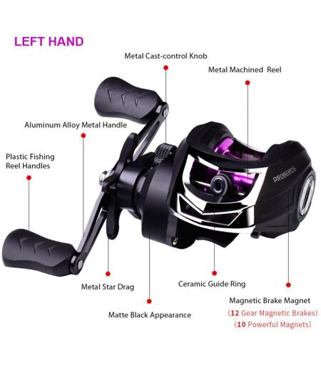 Description:Marque: PROBEROSCouleur: noir pourpreCatégorie: roue de goutte d'eauRapport d'engrenage: 7.2:1Poids: 212gForce de déchargement: 10kgSpécifications:Frein de 1.10KG: réglez le bouton pour le contrôler. La grande traînée convient à la pêche de gros poissons.Freins magnétiques à engrenages 2.12: la linéarité réglable à 12 positions rend le contrôle plus flexible et pratique3. Anneau de guidage en céramique Sic: la ligne rétractable est plus lisse, résistante à l'usure et à la chaleur, et il n'est pas facile d'endommager la ligne de pêche.4. Porte-moulinet FRP: porte-moulinet FRP, léger et plus ferme combiné avec une canne à pêche pas facile à secouer5. Poignées de moulinet de pêche en plastique: antidérapant n'est pas facile à salirEmballage Inclus:1 * moulinet à poisson ...