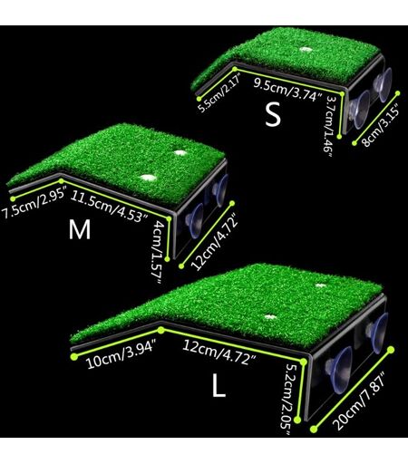 Plate-forme de descente de tortue, ventouse, échelle d'escalade de tortue, décor d'aquariumOOTDTY100% neuf et de haute qualitéCaractéristiques:1. table de séchage de polyculture de poissons et de tortues, ventouse forte, forte capacité portante, peut réaliser la polyculture de poissons et de tortues pour des soins plus longs.2. Une variété de modèles sont disponibles, veuillez choisir la plate-forme de tortue d'eau de simulation appropriée en fonction de votre propre taille d'aquarium.3. Les plantes aquatiques simulées augmentent considérablement la friction entre la tortue et l'herbe, et la conception scientifique et raisonnable de la pente douce permet à la tortue de grimper facilement.4. Nettoyez l'échelle de la tortue avant de la placer dans le réservoir de tortue et mouillez la partie latérale, utilisez régulièrement une brosse douce pour nettoyer la partie latérale, facile à nettoyer.5. installation Simple, facile à nettoyer, placé dans l'aquarium, un beau paysage.Plate-forme de nage de tortue uniquement, la démonstration des autres accessoires sur la photo n'est pas incluse.Spécification:Matériau: PlastiqueTaille optionnelle: S, M, LTaille S: app.8x3.7x9.5x5.5cm/3.15x1.46x3.74x2.17inTaille M: app.12x4x11.5x7.5cm/4.72x1.57x4.53x2.95inTaille L:/Couleur: VertQuantité: 1 SetNote:Aucun paquet de vente au détail.Veuillez permettre une erreur de 0-1cm en raison de la mesure manuelle. Veuillez vous assurer que cela ne vous dérange pas avant d'enchérir.En raison de la différence entre les différents moniteurs, l'image peut ne pas refléter la couleur réelle de l'article. Merci!Contenu de l'emballage:1 ensemble x plateforme de descente de tortue ...