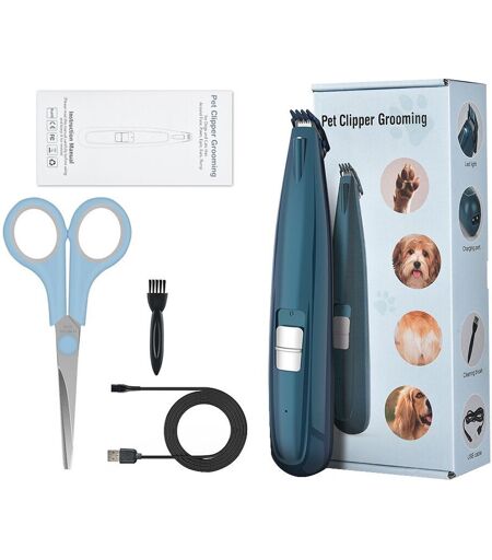 Dog Hair Clippers Grooming Haircut Trimmer Shaver Set USB Electric Hair Cutter Scissor Machine Pets Professional Pedicure ToolFeature:With LED light, the design of the cutter head is R-shaped, which is not easy to abrade the skin, and the ceramic cutter head is sharp, suitable for pets small areas trimming.Safety ceramic cutter smooth, stainless steel detachable limit combination W thermal conductivity, heat resistance, wear resistance, safer, rust-free size, allowing your pet to exist safely, preventing damage from uniform scraping (leave 3 mm away, detachable if you don't need it)Specification:Material: ABSPacking: color boxSize: length 215 width 85 height 45mm/8.5*3.4*1.7inUse tutorial:Step 1: Let your pet hear the sound of scissors.Step 2: Before fine trimming, use scissors to trim the long hair around your pet's pawsStep 3: Use a pet trimmer to trimStep 4: Reward them pet snacks so that your pet will have a good memory of the haircutNote:Due to the different monitor and light effect, the actual color of the item might be slightly different from the color showed on the pictures. Thank you!Please allow 1-2cm measuring deviation due to manual measurement. 1 x Hair Clipper Host1 x Scissors1 x Usb Cable1 x Cleaning Brush1 x Limit Comb1 x Five Languages Manual1 x English Color Box ...