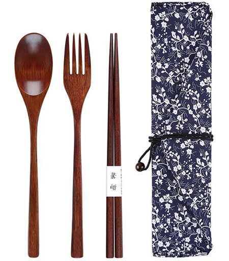 Baguettes Chinoises, Vaisselle, Couverts En Bois, Cuillère À Long Manche, Fourchette, Sac En Tissu, Respectueux De L'environnement, Voyage Portable