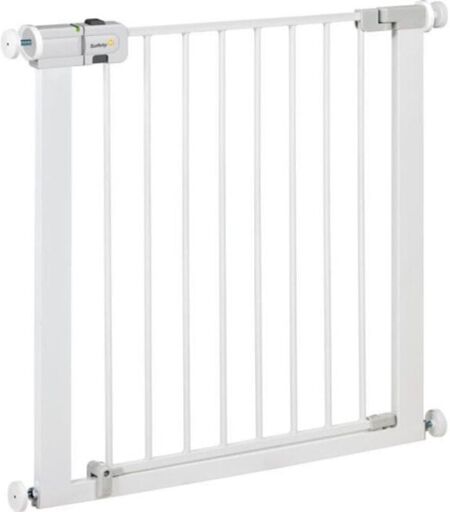 Barriere a pression, avec portillon. Systeme de fixation : par pression 4 points (pas de trou dans les murs). Technologie SecurTech® : indique la bonne fermeture de la barriere (voyant vert/rouge). Largeur sans extension : 73 - 80 cm. Jusqu'a 136 cm avec extensions (vendues séparément). Ouverture d'une main. Fermeture facile : systeme claquer pour fermer. Choix du sens d'ouverture. Matiere : métal blanc ...