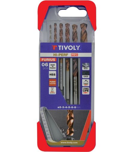 Tivoly - Coffret pro 6 Pièces • 6 Forets Métaux hss Ø2mm à Ø8mm • Longue Durée de Vie • Fabriqué en France • Pour Usinage Aciers Résistants