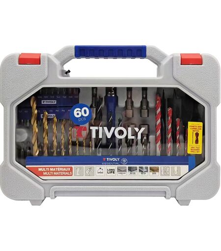 Tivoly - Mallette 60pcs T60 Perçage Métal, Bois, Béton, Carrelage et Vissage