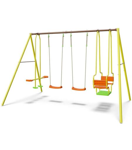 Portique mirapou en metal - 2,20 m - 2 balancoires + 1 face a face + 1 nacelle - Trigano