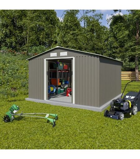 Trigano - Abri de jardin métal gris/vert 10,91 m² + kit d'ancrage