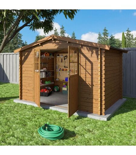 DESCRIPTION GÉNÉRALE Découvrez le charme et la solidité de notre Abri de Jardin Honos , conçu pour une durabilité exceptionnelle avec ses parois de 28 mm traitées autoclave classe 3. Profitez d'un entretien minimal sans compromettre la qualité. Personnalisez cet abri selon vos goûts avec des rideaux et en l'entourant de végétaux légers comme des graminées ou des lavandes. Un ajout parfait à votre jardin, alliant fonctionnalité et esthétique . SPÉCIFICATIONS TECHNIQUES Construction en madriers à emboîter pour un montage facile et une résistance optimale. Double porte vitrée apportant luminosité et facilité d'accès pour les objets encombrants. Hauteur de mur généreuse pour un rangement aisé de vos équipements de jardinage et mobilier. Poignée de porte avec serrure intégrée pour une sécurité accrue de vos biens. Toit à double pente et portes vitrées pour un design chaleureux et authentique . ...