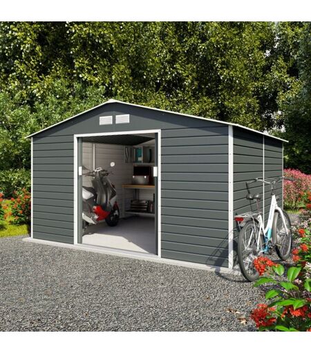 Trigano - Abri de jardin métal anthracite 10,20 m² + kit d'ancrage