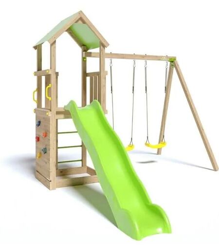 Trigano Aire De Jeux Smart-Xperience - Plate-Forme Et Mur D'escalade + Toboggan + 2 Balançoires