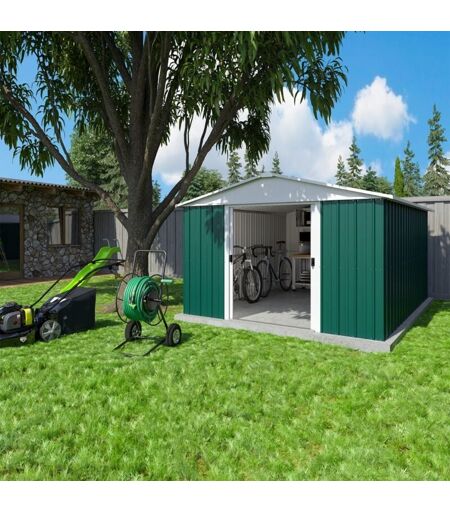 M&S Abri de jardin métal vert Yardmaster 11,03 m² + kit d'ancrage