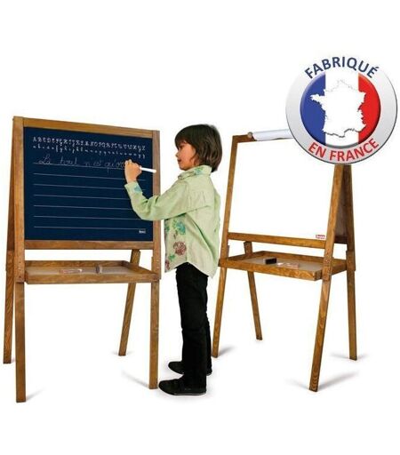 Tableau d'écolier évolutif en bois massif Ce grand tableau dessin des écoliers JEUJURA (réf. JEU8758 - EAN 3225280875804) offre un espace créatif polyvalent pour les enfants de 3 à 10 ans. Fabriqué en bois teinté chêne, il combine robustesse et design intemporel pour résister aux années d'utilisation tout en s'intégrant harmonieusement dans les chambres d'enfants. Double surface d'expression artistique Le chevalet propose deux faces fonctionnelles : une ardoise noire pour craies traditionnelles et une surface blanche magnétique compatible feutres effaçables. La tablette inférieure inclut un rouleau de papier dessin pour développer les talents d'artiste en herbe. Ergonomie ajustable pour croissance Avec son système de réglage en hauteur (115 à 120 cm), ce tableau pédagogique s'adapte à la taille de l'enfant. Le piètement stable et la surface inclinée optimisent le confort d'utilisation pendant les séances de dessin ou d'apprentissage. Accessoires complets inclus Le set comprend tous ...
