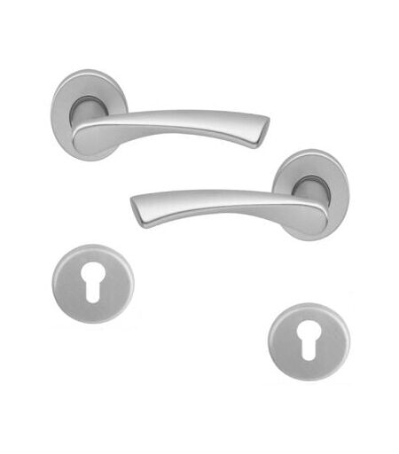 OUVRE&DECO Poignée de porte d'entrée design en Aluminium anodisé argent F1 sur rosace ronde Clé I, MILANO