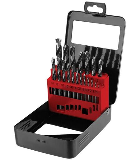 Caractéristiques techniques 19 pièces Dimensions : 1 - 1.5 - 2 - 2.5 - 3 - 3.5 - 4 - 4.5 - 5 - 5.5 - 6 - 6.5 - 7 - 7.5 - 8 - 8.5 - 9 - 9.5 - 10 mm Forets laminés forgés Angle d'affûtage : 118 ...