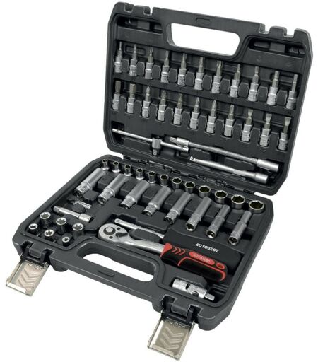 Caractéristiques techniques Composition : x1PC - cliquet 1/4" x1PC adaptateur : 1/4"*3/8" x1PC - poignée coulissante 1/4" x1PC - rallonge télescopique 1/4"Dr.150mm x13PCS - douilles 1/4" : 4-4.5-5-5.5-6-7-8-9-10-11-12-13-14mm x8PCS - douilles longues 1/4" : 6-7-8-9-10-11-12-13mm x6PCS - douilles empreintes étoile 1/4" : 4-5-6-7-8-10mm x1PC - poignée coulissante en T-1/4" x1PC- cardan universel 1/4" x22PCS - douilles à embout 1/4" x2PCS - rallonges 1/4" : 50mm&100mm; Chrome Vanadium ...
