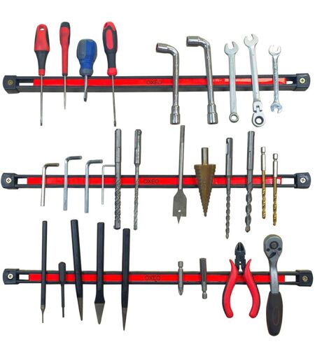 OXEO Jeu de 3 barres aimantées 45cm - bande magnétique accroche mural outils - rangement outillage garage atelier - aimant puissant