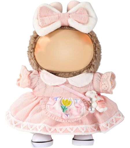 TRUST-4pcs Tenure Kawaii de Poupée, Ensemble de Vêtements en Peluche Rose pour 15-17cm Robe Accessoires Cheveux à N?ud Chaussures en Toile & Sac Lapin