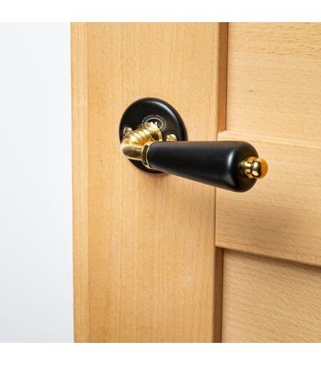 Poignée sur rosace MERIGOUS Porcelaine noir laitonné, porcelaine de limoges sans trou
