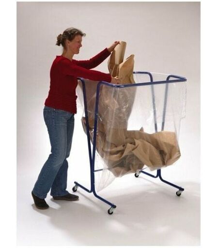 Support à large ouverture, idéal en atelier et pour le tri sélectif. Structure tubulaire diamêtre 25 mm montée sur 4 roulettes. Maintien du sac par tension des tubes. S'utilise avec des sacs de 600 litres. Livré démonté, visserie incluse. Dimensions (L x P x H) : 1200 x 800 x 800 mm ...