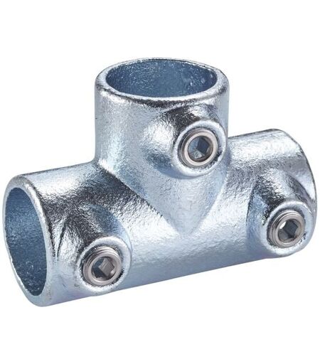 Connecteur d'assemblage en T Ø 42 mm Pour réaliser des constructions : rapidement, solides, durables, récupérables, modulables, sur mesure, innovantes… Réalisation illimitée, sans soudure, sans perçage, sans filetage ! Résistance au serrage : 300 kg Epaisseur tube 1,5 mm ...