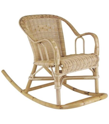 Rocking-chair pour enfant en rotin avec accoudoirs et repose-pieds. Dimensions : 41 x 75 x 52 cm H siège 31 cm. ...