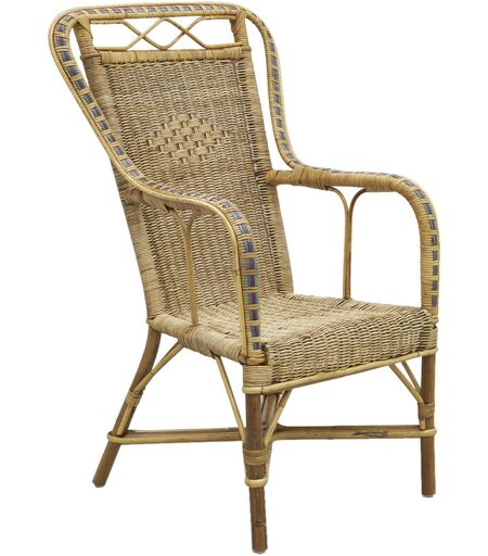 Aspect Matériau principal Manau Matériaux secondaires Moelle de rotin Dimensions Hauteur (en cm) 102,00 Hauteur assise (en cm) 43 Hauteur de l'accoudoir (en cm) 68,00 Longueur (en cm) 54,00 Profondeur (en cm) 58,00 Autres caractéristiques Compatible extérieur Oui. Le matériau se patine en cas de longue exposition en extérieur. Entretien Dépoussiérer régulièrement + effectuer un nettoyage plus en profondeur tous les 3 mois. Livré monté Oui Conçu en manau et moelle de rotin Accoudoirs en rotin coloré Motif losange sur le dossier Compatible intérieur et extérieur Longueur 54 cm Largeur 58 cm Hauteur 102 cm ...