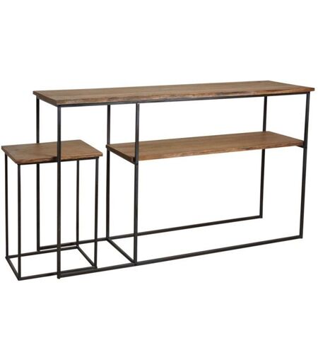 Aspect Matériau principal Bois Matériaux secondaires Métal Dimensions de la console Hauteur (en cm) 88 Largeur (en cm) 44,5 Longeur (en cm) 150 Dimensions de la table Hauteur (en cm) 60,5 Largeur (en cm) 34 Longueur (en cm) 44 Autres caractéristiques A monter Oui Charge maximale (en kg) 60 kg pour l'étagère du haut du meuble et 20 kg pour les 2 autres. Poids (en kg) 7,00 Console avec table gigogne en bois et pied métal ...