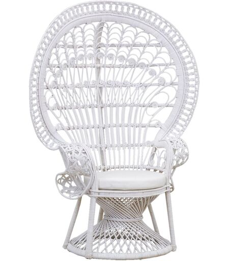 Fauteuil Emmanuelle Artisanal en Rotin Laqué Blanc Caractéristiques Aspect : Coloris : Blanc Finitions : Laquée Matériau principal : Rotin Matériaux secondaires : Coton Kapok Dimensions Dimensions : Hauteur : 150 cm Hauteur de siège : 48 cm Longueur : 105 cm Profondeur : 74 cm Autres caractéristiques Détails : Composition : Un coussin 100% coton, déhoussable, garni de kapok Informations complémentaires : Fabrication artisanale Livré monté : Oui Poids : 10,50 kg Recyclable : Oui Fauteuil Emmanuelle en rotin avec finition laquée blanche et coussin déhoussable 100% coton garni de kapok. Hauteur de siège de 48 cm, pour des dimensions de 105 cm de longueur, 74 cm de largeur, et 150 cm de hauteur globale. ...