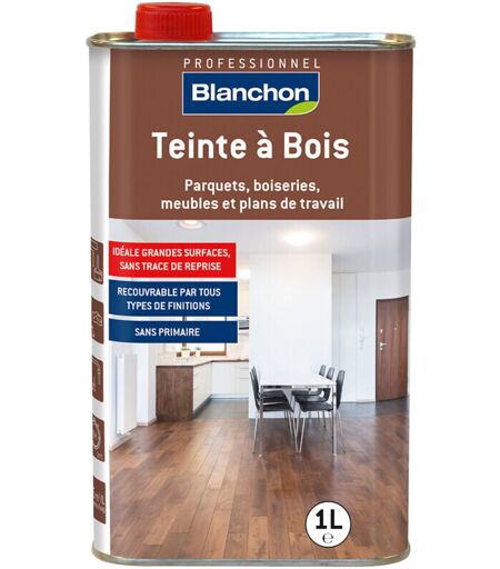 Teinte pour parquets, meubles, plans de travail et boiseries intérieures. Teinte à Bois Blanc Blanchon Teinte à bois professionnelle en phase aqueuse à base de pigments et prête à l'emploi. La teinte à bois est idéale pour teinter et uniformiser la couleur des parquets, meubles, plans de travail et boiseries intérieures, de toutes essences. Grande facilité d'application, sans trace de reprise ni marque de raccord, la rend particulièrement adaptée pour les grandes surfaces. La teinte pour bois est recouvrable directement par tous types de finitions (vitrificateur, vernis, huile ou cire - solvant ou phase aquesue), sans besoin de primaire. Toutes les teintes sont miscibles entre elles, pour une palette de teintes infinie. Les avantages : Prête à l'emploi Idéale grandes surfaces Sans trace de reprise Recouvrable directement, sans primaire Compatible tous types de finitions Applicable sur toutes essences de bois Teintes miscibles entre elles ...