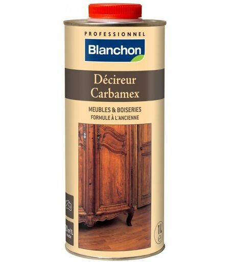 Décireur Carbamex® de BLANCHON Puissant décrassant pour élimination des cires et encaustiques pour la restauration des parquets et meubles en bois cirés. Conditionnement : 1 Litre Il agit en ramollissant les anciennes couches de cires permettant de décrasser efficacement, il nettoie sans alterer ni dessécher le bois. Formulation à l'ancienne de tradition et de haute qualité. Finition incolore. Consommation 20 m² / Litre Application au chiffon sec ...