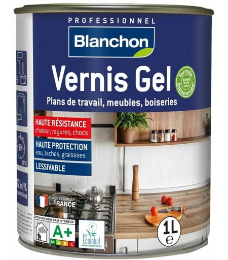 Résumé : Formule biosourcée testée selon la norme NF EN 16640 Texture gel : ne coule pas Haute résistance : chaleur, rayures, chocs Haute protection : eau, taches, graisses Lessivable Plus d'informations sur la fiche technique ci-dessous. Plus en détails : Destination et présentation Le VERNIS GEL BLANCHON contient 77% d'ingrédients naturels, minéraux et biosourcés (non issus de l'agriculture biologique) dont 24% de carbone biosourcé mesuré selon la norme NF EN 16640. Le VERNIS GEL est utilisable en intérieur sur plans de travail, meubles et boiseries, sur toutes essences de bois. Sa texture gel anti-coulures permet une application facile sur surfaces verticales et est la garantie d'un rendu parfait. Sa formulation à base de résines aqua-polyuréthanes haute résistance garantit une protection renforcée à la chaleur (jusqu'à 100°C), à l'eau, aux taches, aux graisses, aux rayures et aux chocs. Le VERNIS GEL est lessivable : il résiste aux lavages et aux produits ménagers. Préparation des ...