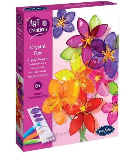 Ce coffret permet de cr?er 8 fleurs qui semblent ?tre en verre effil?, pourtant elles ne sont faites qu'en peinture vitrail. Pour les r?aliser, il suffit de former des tiges dans un moule et de les remplir de peinture. En quelques heures, l'eau s'?vapore et la couleur devient cristalline. L'assemblage des p?tales est un jeu d'enfant qui se compl?te par des pistils en Patarev. Ainsi, Crystal Flor est un kit complet d'activit? manuelle pour ceux qui aiment cr?er des objets de d?coration. Conseils d'utilisation La peinture vitrail est repositionnable ! Vous pouvez en effet r?aliser de jolis dessins ? apposer sur vos fen?tres, r?frig?rateurs et surfaces froides ! Vous pouvez utiliser une pochette plastique pour vous permettre d'utiliser la peinture vitrail qu'il vous reste apr?s avoir r?alis? vos fleurs : Glissez le dessin de votre choix ? l'int?rieur de cette pochette plastique. Amusez-vous ? tracer les contours avec de la peinture vitrail. Laissez un peu s?cher puis comblez le reste du motif, toujours avec la peinture vitrail. Apr?s quelques heures, vos cr?ations seront s?ches et translucides ! Vous pouvez maintenant les apposer sur vos fen?tres ou votre r?frig?rateur !. Pas de panique, vous pourrez facilement d?coller vos cr?ations pour les repositionner ? votre guise. ...