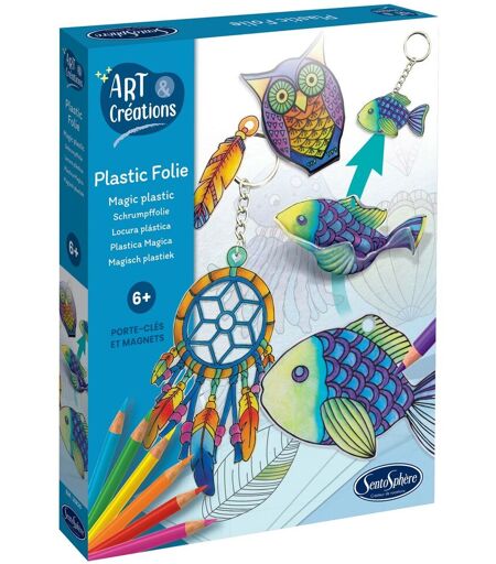 Amusez-vous ? colorier les dessins des feuilles de Plastic Folie avant de les mettre au four ? 180?C. En quelques minutes, les feuilles se r?duisent de 7 fois leur taille et ?paississent ! Les cr?ations pourront alors devenir des porte-cl?s, des magnets ou autres gris-gris !. Ce coffret cr?atif propose ?galement une feuille de Plastique Folie vierge pour que vous puissiez inventer et dessiner vos propres cr?ations ! Un super loisir cr?atif pour les artistes en herbe ! ...