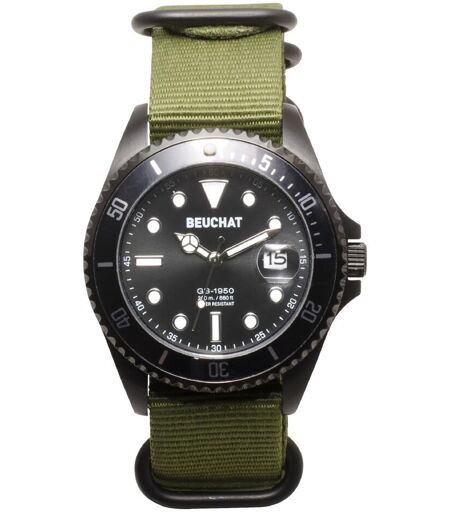 3Suisses : Cette Montre Homme Beu1950-9 - Beuchat est un modèle au design épuré, efficace. Son boîtier Noir d'un diamètre de 44 mm affiche un aspect sobre et élégant. Le bracelet, large de 22 mm, complète parfaitement ce look sophistiqué. La montre est dotée de fonctionnalités pratiques comme le dateur. Une montre au charme irrésistible, sans ostentation, qui saura séduire les hommes recherchant un garde-temps à la fois moderne et intemporel. Type: Montre Marque: Beuchat Genre: Homme Styles: Mode Age: Adulte Couleur du bracelet: Vert Mouvement: Quartz Fonctionnalités: Dateur Matière Bracelet: Nylon Affichage: Analogique Etanchéité: 200 m (20 ATM) Matière Boitier: Acier Forme de Boitier: Rond Couleur du cadran: Noir Verre: Minéral Type Fermeture: Boucle simple Diamètre Boitier: 44 mm ...