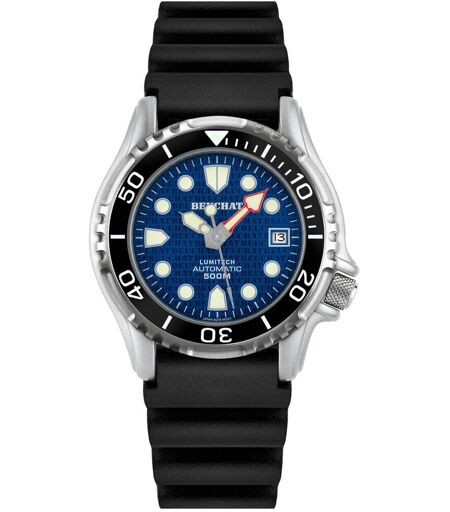 3Suisses : Montre Homme BEUCHAT MONTRES LUMITECH BEU0514-2 - Bracelet Acier Noir Type: Montre Marque: Beuchat Genre: Homme Styles: Sport Age: Adulte Couleur du bracelet: Noir Mouvement: Automatique Matière Bracelet: Acier Conditionnement: Ecrin de la marque Garantie: 2 Ans Type de garantie: Fabricant Affichage: Analogique Etanchéité: 500 m (50 ATM) Matière Boitier: Acier Forme de Boitier: Rond Couleur du cadran: Bleu Verre: Minéral Type Fermeture: Boucle simple Diamètre Boitier: 45 mm ...
