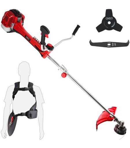 Oxeo - Débroussailleuse thermique professionnelle 50.8 cm³ - Moteur pro 2 temps - Coupe-bordure - 2 lames - Anti-vibration