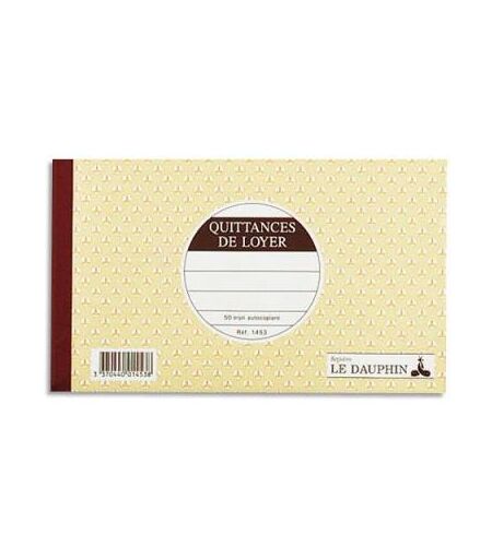 Carnet quittance de loyer Le Dauphin - à souche - 12.5x21cm - 50 feuillets - autocopiants - tripli