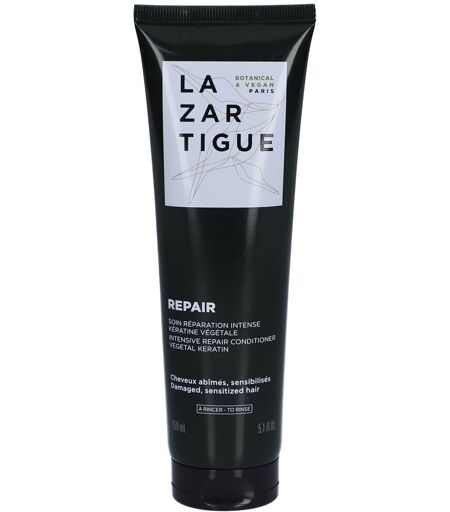 Lazartigue Soin Réparation Intense Kératine VégétaleCe soin après-shampooing quotidien répare intensément les cheveux abîmés et sensibilisés. Sa formule riche en kératine végétale, composée à 91% d’ingrédients d’origine naturelle, pénètre au cœur du cheveu et du cuir pour restructurer les fibres de kératine endommagées. Les cheveux, parfaitement démêlés, retrouvent leur vitalité, souplesse et douceur. Réparation intense – Brillance - Démêlage facile Sa texture riche et fondante enveloppe généreusement la chevelure et libère à l’application une douce fragrance florale aux notes de violette et d’héliotrope. Sans silicone – Vegan Au fil des techniques agressives subies à répétition (coloration, décoloration, brushings…), la kératine de vos cheveux s’abîme en profondeur. Résultat, les écailles se soulèvent et la fibre n’est plus lisse. Le cheveu devient cassant, terne et rêche. Pour réparer en profondeur la fibre capillaire abîmée, il est essentiel de lui apporter un stock supplémentaire de kératine. Un cheveu abîmé est un cheveu dont le stock de kératine est épuisé. Un apport kératinique extérieur peut aider à réparer la fibre endommagée. Grâce à sa forte teneur en kératine végétale, le soin après-shampooing Repair permet de restaurer et consolider la structure les chevelures abîmés et sensibilisées pour retrouver douceur, souplesse et brillance. Formulé pour un usage quotidien, l’après-shampooing Repair facilite le démêlage en protégeant ainsi les cheveux de la casse. L’acide hyaluronique végétal présent dans la formule contribue à repulper la fibre afin de la fortifier. L’après-shampooing Repair agit comme un véritable cataplasme, en créant une enveloppe autour du cheveu. Résultats prouvés : 95% : le démêlage est facilité 91% : les cheveux sont réparés 91% : les cheveux sont soyeux * Auto-évaluation sur 24 volontaires en application 2 à 3 fois par semaine pendant 28 jours, % de satisfaction ATOUTS Sa formule vegan ne contient pas de kératine animale La plupart des soins réparateurs sont formulés à partir de kératine d’origine animale. Facile à extraire et peu coûteuse, cette dernière provient des cornes ou des sabots des animaux d’abattoir, des plumes de volaille ou encore de la laine. Fidèles à notre volonté de protéger le monde du vivant, nous avons fait le choix inédit de formuler toute la gamme Repair à partir d’une kératine 100% d’origine végétale, extraite du riz et du soja. Également connue sous le nom de phyto-kératine, cette alternative vegan est très efficace pour retrouver une chevelure naturellement saine et douce.ApplicationEn application systématique après chaque shampooing : 1. Essorer les cheveux. 2. Appliquer le soin des longueurs jusqu’aux pointes. 3. Laisser poser 2 à 3 minutes. 4. Démêler du bout des doigts ou à l’aide d’un peigne ou d’une brosse. 5. Rincer.IngrédientsAqua/Water/Eau, Behentrimonium Chloride, Cetearyl Alcohol, Dicaprylyl Carbonate, Cetyl Alcohol, Glycerin, Myreth-3 Myristate, Isopropyl Alcohol, Crambe Abyssinica... ...